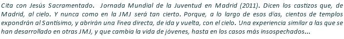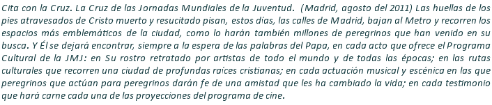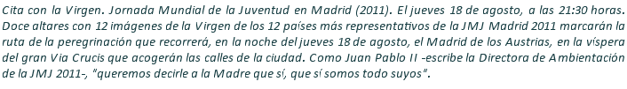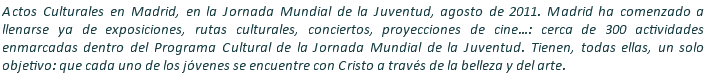 Inicio > Vida Cristiana > J.M.J. Madrid 2011 > Citas en la semana de la Jornada Mundial de la Juventud en Madrid